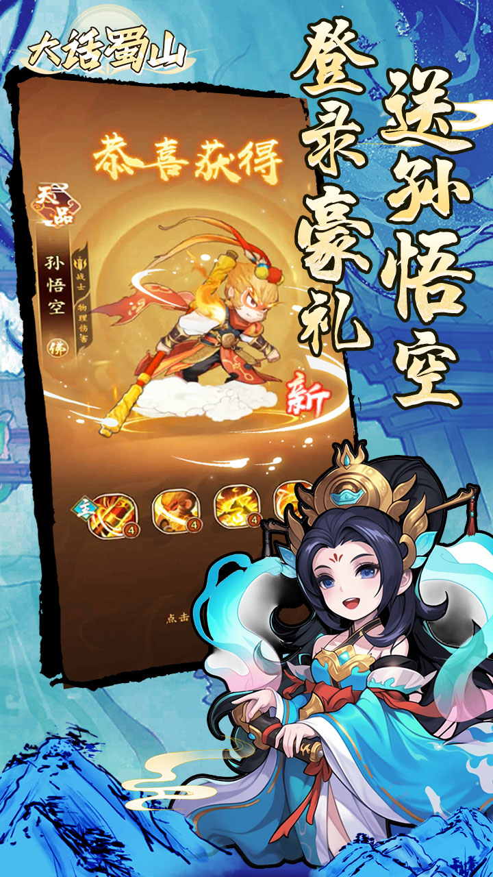 《大话蜀山》一款基于放置挂机自动战斗体验与开箱子惊喜抽奖体验相融合,有一定养成深度和策略搭配的修仙养宠题材RPG卡牌小游戏,易上手,多路线培养,三大阵营策略搭配。提供更爽的成长感受、更多的策略搭配空间和更深的养成深度。