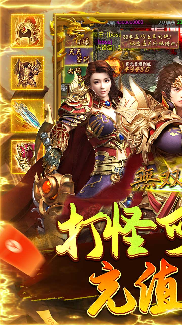无双战车(燕祖传奇超变)是一款打怪就能获得货币,一直打怪一直提升,可白嫖真红白,超多特殊buff属性,让PK打架不在单调,没有装备货币绑定,没有收费会员赞助