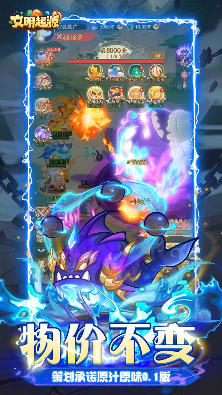 探索上古未知世界的大门,领略神秘奇珍异兽,再创异兽新体验!这里有上古异兽种族之间的各类纷争与挑战,探索之时,异兽之间,各大宗族大乱斗,百种奇珍异兽,神秘法宝轻松获得,异兽快速培养全靠挂机,在新的上古未知的世界中从零开始走向巅峰,异兽机缘无所不有。勇而无畏的仙友们,共赴远古起源世界,探索所有的未知,感受期待和发现的快乐!