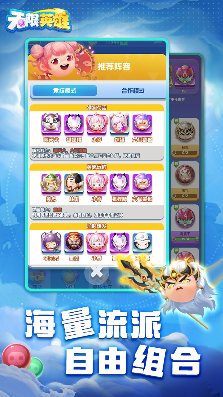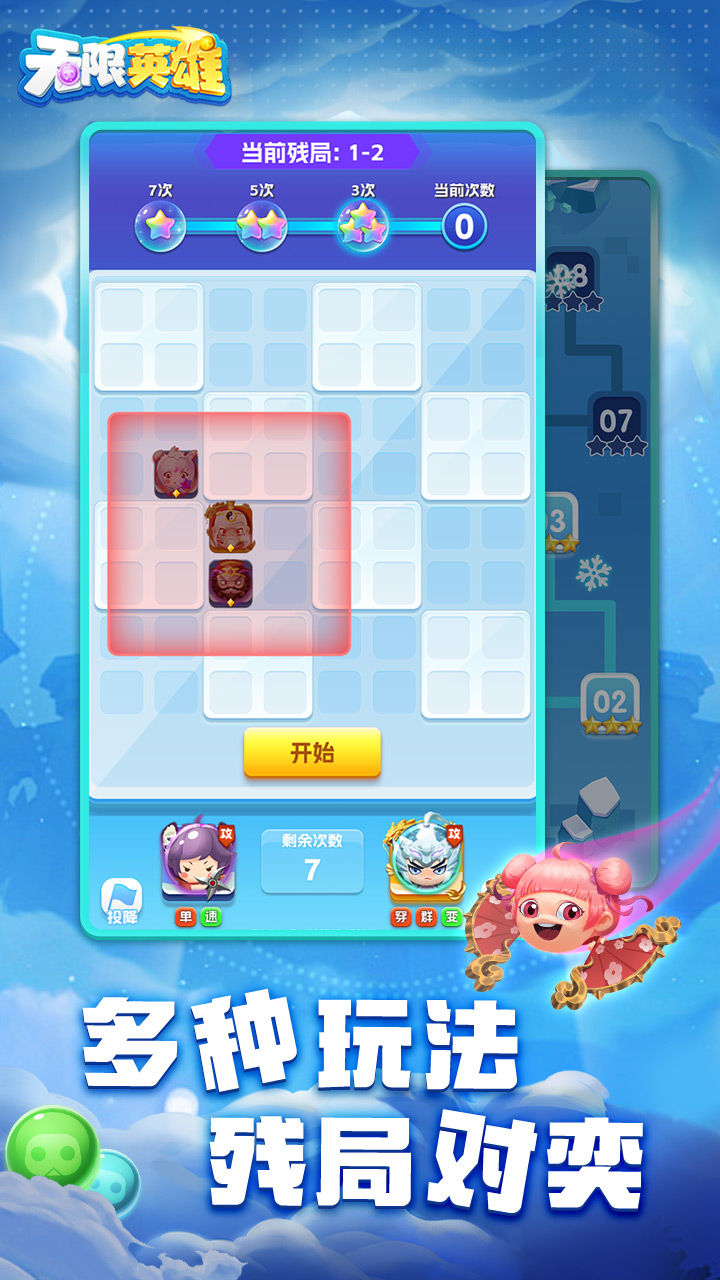《无限英雄0.1折》是一款融合了历史以及神话元素的策略对战手游,从智勇双全的三国名将到神秘莫测的神话人物,每位英雄都有自己独特的技能和属性,玩家可根据自己的战术以及喜好将来自不同时期又极具特色的英雄进行组合搭配,随时随地与其他玩家进行一场2分钟的实时畅快对弈!